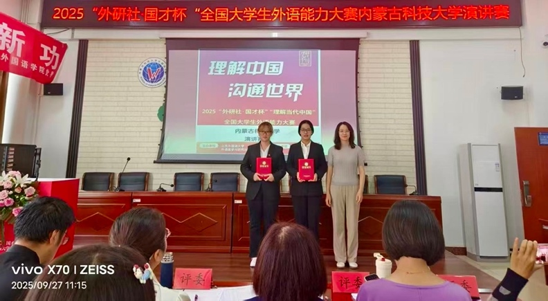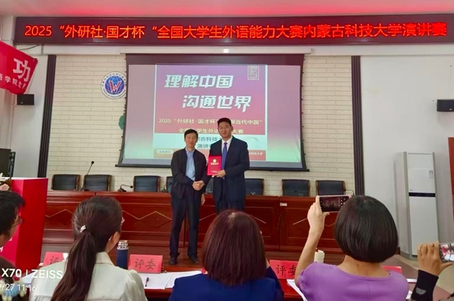 9月27日,内蒙古科技大学成功举办2025“外研社•国才杯”“理解当代中国”全国大学生外语能力大赛英语演讲校级选拔赛。经过激烈角逐,材料科学与工程学院肖竣夫荣获一等奖,文法学院张楚晗与马克思主义学院宋昱霖分获二等奖,三位同学将代表学校参加内蒙古自治区复赛。